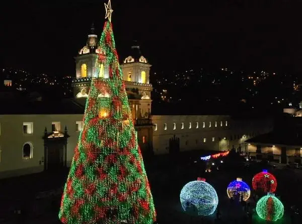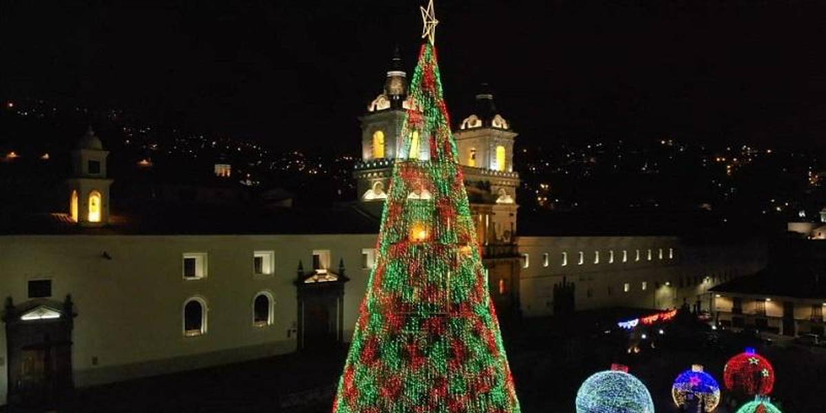 Un árbol de Navidad en el Centro Histórico de Quito. ( )