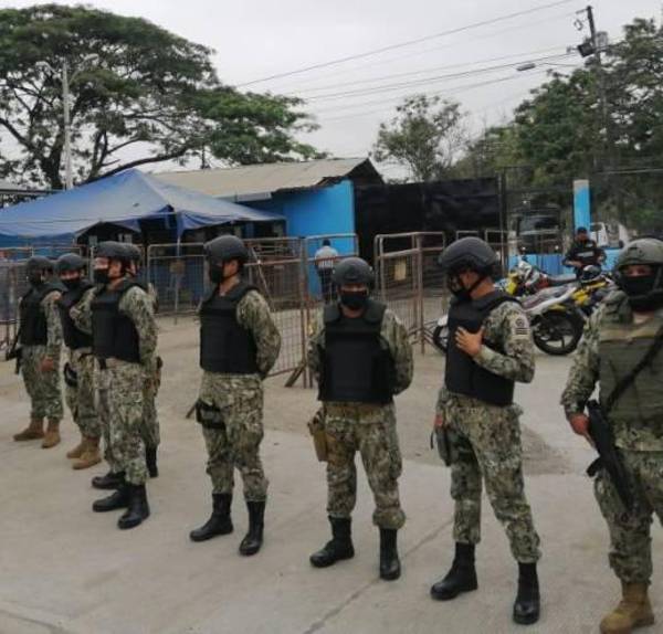 Militares resguardan el exterior de la Penitenciaría del Litoral, en Guayaquil.( )