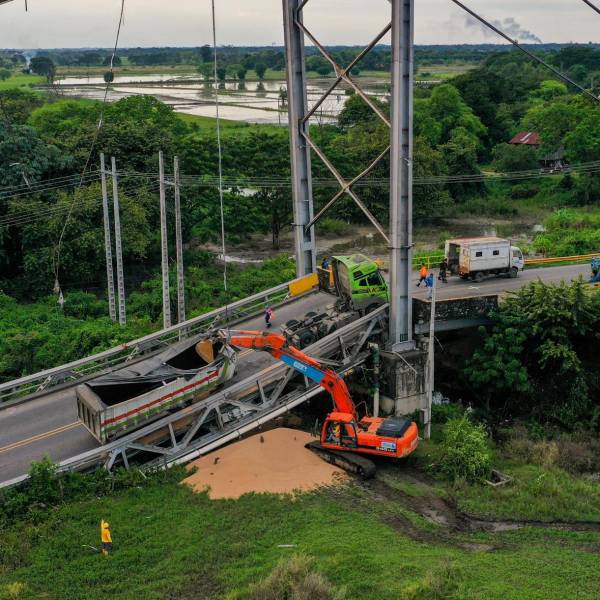 Uno de los camiones afectados por el colapso del puente Nobol-Daule fue retirado