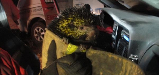 Un puercoespín hembra fue rescatada luego del incendio que se registró ayer en el sector de Itulcachi en Pifo. La especie que logró escapar con vida fue atendida en el hospital veterinario de la Universidad San Francisco de Quito y posteriormente liberada.