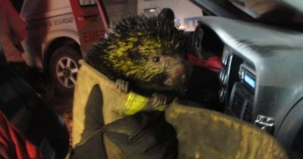 Un poco asustada, pero en buenas condiciones de salud se encontraba el animal tras salvarse de las llamas con ayuda de miembros del COE Metropolitano. “Cerca de las rocas llamaba la atención un color amarillo vistoso, en medio de la oscuridad y esa era esta cuerpitaespín que fue rescatada”, comenta el director de la institución, Christian Rivera.