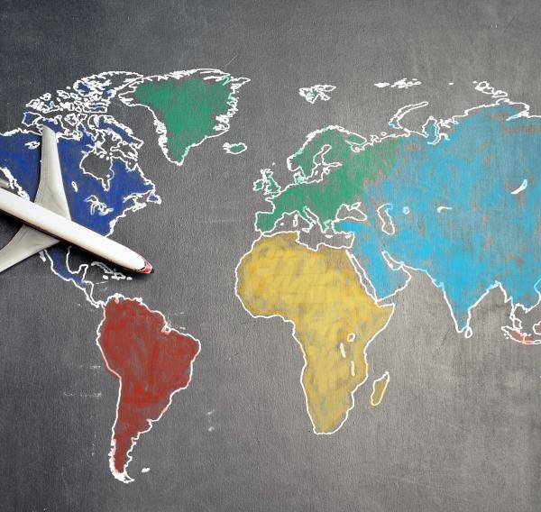 Imagen referencial de avión sobre mapa del mundo. ( )