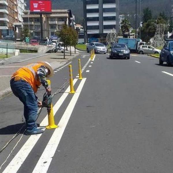 En el transcurso de esta semana, las brigadas de señalización de esa entidad instalaron 211 bolardos (elementos tubulares de color amarillo) abatibles para separar a la ciclovía de la Naciones Unidas, entre las avenidas América y 10 de Agosto, en los sentidos oriente – occidente y occidente – oriente. Anteriormente, la ciclovía se encontraba compartida con los automóviles.
