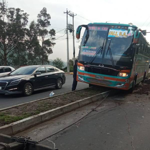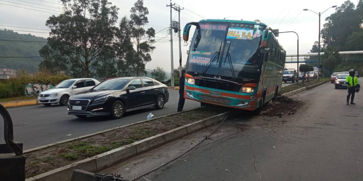 Un bus se desvió del carril e invadió parte del contrario en la Autopista General Rumiñahui, cerca de El Trébol, lo que imposibilitó la habilitación del contraflujo en sentido Valle-Quito.