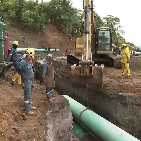 Según datos de Petroecuador, 80 metros se dañaron directamente por el aluvión del martes pero se requieren 180 metros de tubería para ejecutar el cambio.
