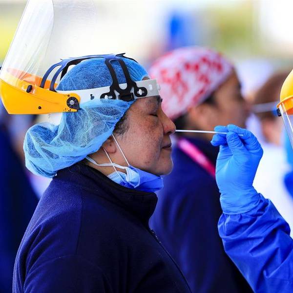 Personal de la secretaria de Salud del Municipio de Quito toma muestras para el test de diagnóstico para coronavirus. Foto: EFE