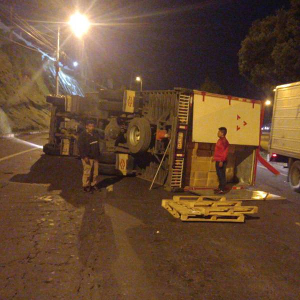 Antes de las 05:30 de este miércoles 18 de mayo del 2022, un camión se volcó en la avenida Simón Bolívar, a la altura de La Forestal, suroriente de Quito. La Agencia Metropolitana de Tránsito (AMT) informó que se cerraron los carriles derecho y central en sentido sur – norte y su personal gestionó la movilidad en el sector.