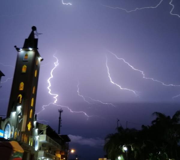 Un rayo impactó contra la cruz de la torre más alta de la iglesia católica de Santa Lucía, en la provincia del Guayas, provocando el desprendimiento de la estructura, aunque esta no cayó a la calle.
