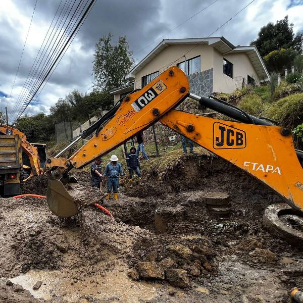 Una rotura en una gran tubería de agua en el sector de Rayoloma, en el oeste de Cuenca, afectó a 17 viviendas y provocó que algunas familias evacuen sus hogares ante el riesgo de posibles colapsos estructurales.