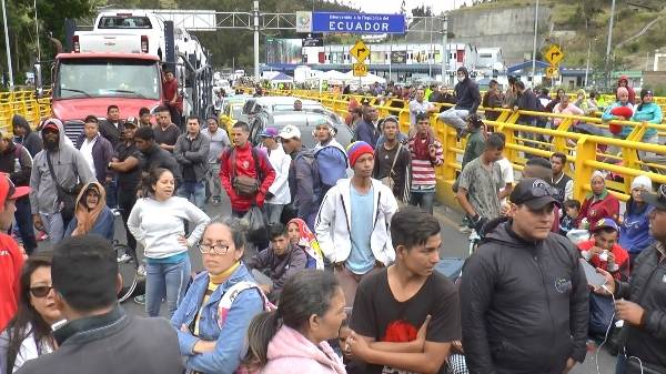 Esto también afectó al lado colombiano. "Como podemos apreciar un grupo de personas de nacionalidad venezolana se han apostado sobre el límite hacia Colombia, prácticamente obstaculizando el paso vehicular de aquellas personas que tratan salir de Ecuador y llegar a Colombia", dijo Gary Arellano, jefe del distrito de Policía de Tulcán.
