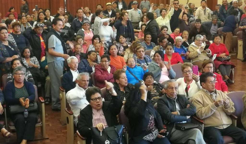 En la Caja del Seguro, un grupo de jubilados pidió un plazo para que les cancelen. Foto: Twitter @alexllanosh