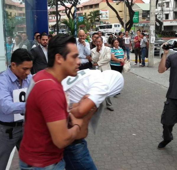 GUAYAQUIL, Ecuador.- Simulación del momento en que fueron detenidos Edwin Vivar y Jhonny Gómez. Foto: Fiscalía de Ecuador