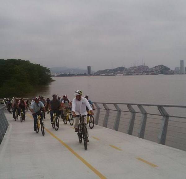 Con recorrido en bicicleta, Correa inaugura puente Durán-Santay