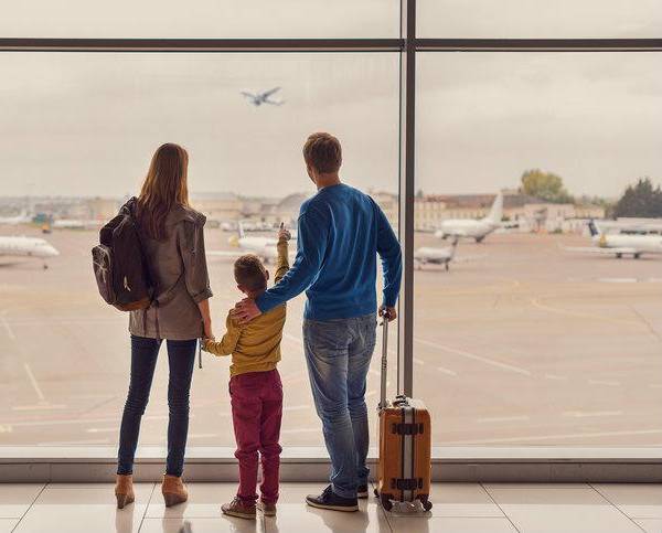 Imagen referencial de una familia con un niño en un aeropuerto internacional. ( )