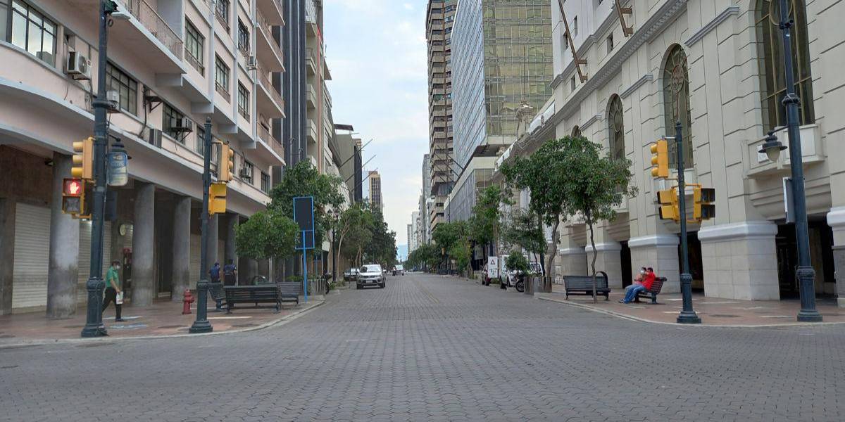 Imagen de centro de Guayaquil en uno de los días de toque de queda total.( )