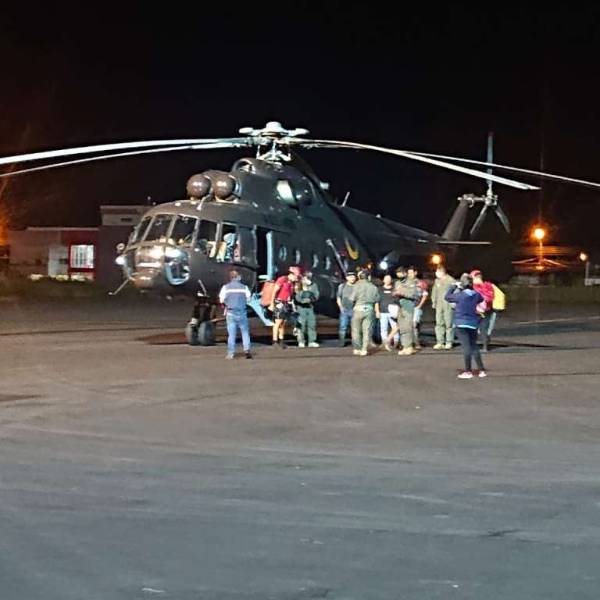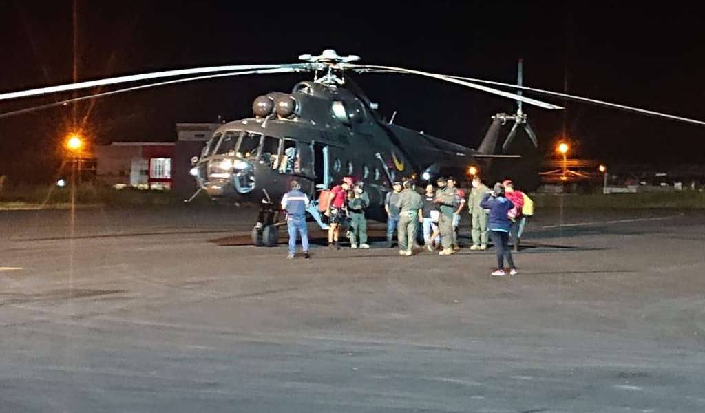 Cerca de las 20:00 el helicóptero aterrizó en el aeropuerto Edmundo Carvajal, de Macas. Los cinco ciudadanos no presentaron descompensación alguna en su estado de salud.