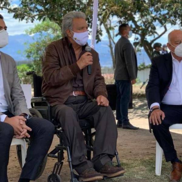 El presidente Moreno junto a Martínez (i.) y Pozo (d.). Foto: Tomada de @Lenin