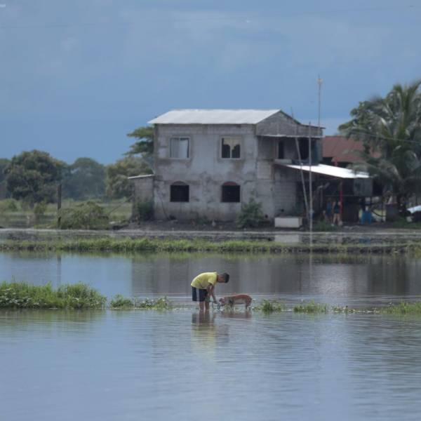 En Jipijapa, provincia de Manabí, los habitantes usan baldes para sacar el agua que ingresó a sus viviendas debido a que el río Paloya se desbordó en medio de una intensa lluvia. La inundación provocó que se cayera una pared del cerramiento de la Universidad Estatal del Sur de Manabí.
