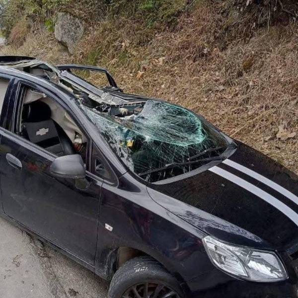 Una roca gigante impactó un vehículo y mató al conductor en el sector Manto de la Novia, Tungurahua