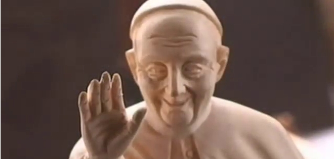 Guillermo Manosalvas, comenzó a tallar medallones y bustos de Jorge Mario Bergoglio hace dos meses, su objetivo es comercializar 4 mil objetos.