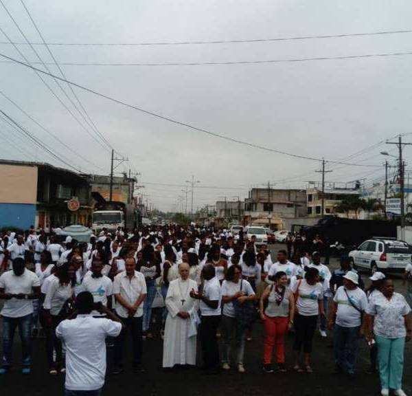 "San Lorenzo es desarrollo, la paz es un derecho", fue una de las consignas coreadas en la manifestación en la que también participó el presidente de la Conferencia Episcopal Ecuatoriana y Obispo del Vicariato Apostólico de Esmeraldas, Eugenio Arellano.