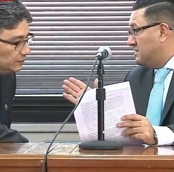 Marco Rodríguez (i.) e Iván Saquicela (d.) formaron parte del tribunal que sentenció a Carlos Pólit . Foto: Captura de pantalla
