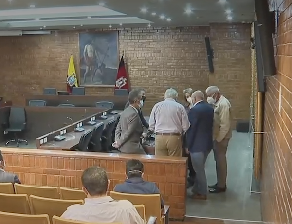 La pugna por la Alcaldía de Quito se evidenció la mañana de este martes, en el Concejo Metropolitano. En la sala del Concejo, 12 ediles se reunieron informalmente convocados por Santiago Guarderas.