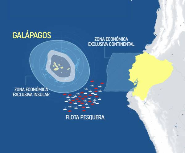A la fecha, la flota que se mantiene cerca de Galápagos no ha violentado el territorio nacional. Sin embargo, las embarcaciones faenan en el límite de la Zona Económica Exclusiva del archipiélago. Este grupo de naves tiene banderas de varios países como China, Liberia y Panamá.