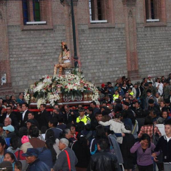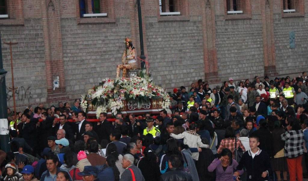 La imagen del Señor del Buen Suceso, patrono de la ciudad de Riobamba, recorrió la ciudad en medio de estrictas medidas de seguridad por parte de la Policía Nacional y Ejército.