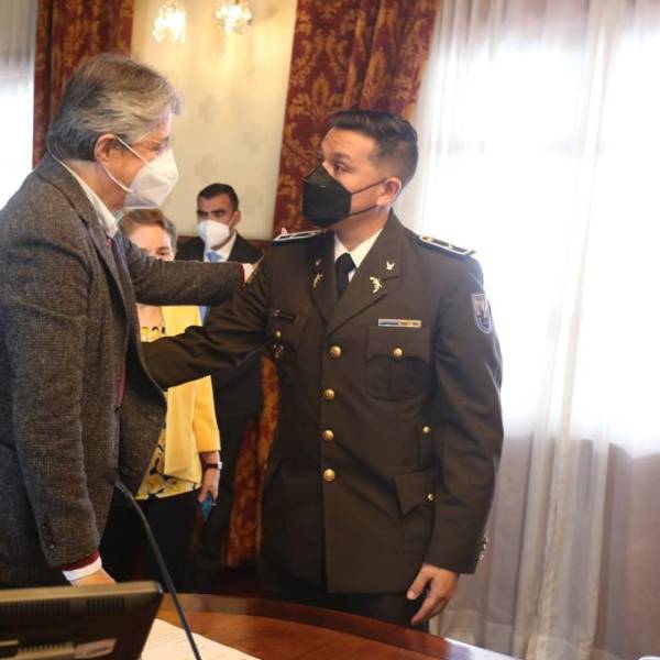 El uniformado se reunió con el presidente Guillermo Lasso, en el salón de gabinete del Palacio de Gobierno.