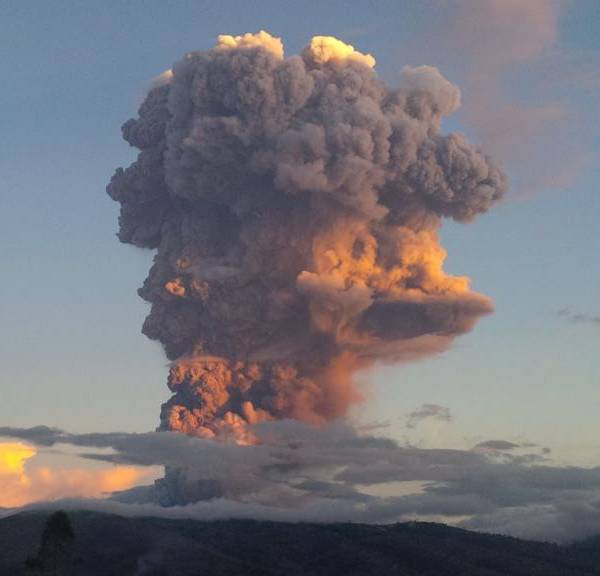 El volcán emanó una columna de aproximadamente 5 kilómetros de altura, se registra caída de ceniza y cascajo en las localidades aledañas al Tunguraghua.