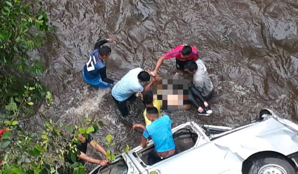 Según las imágenes proporcionadas por el Cuerpo de Bomberos de esa localidad, el vehículo habría caído a una quebrada a la altura del puente Pinguyo, en el sector de 10 de Agosto.