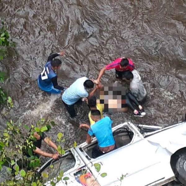 LORETO, Ecuador.- El vehículo cayó a una quebrada aproximadamente a las 07:00. Foto: Cuerpo de Bomberos de Loreto
