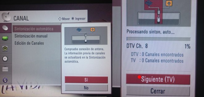 Atención: Antes de todo este proceso debe asegurarse que su televisor esté conectado a la antena.