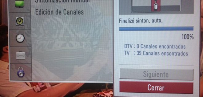 4) Después de esta acción, si el televisor no incorpora el sintonizador ISDBTb no mostrará los canales digitales, lo que indica que el estándar de su televisor no es el adoptado en Ecuador.