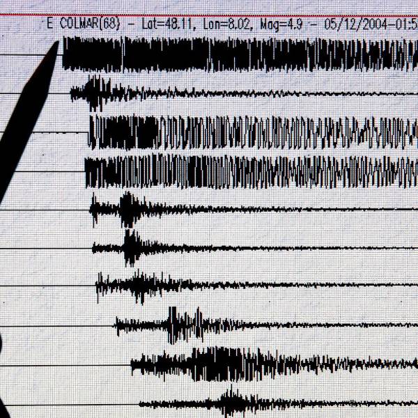 Foto de archivo. Un gráfico registrado por un sismógrafo durante un terremoto que afectó la parte oriental de Francia y el suroeste de Alemania a principios del 5 de diciembre de 2004.( )