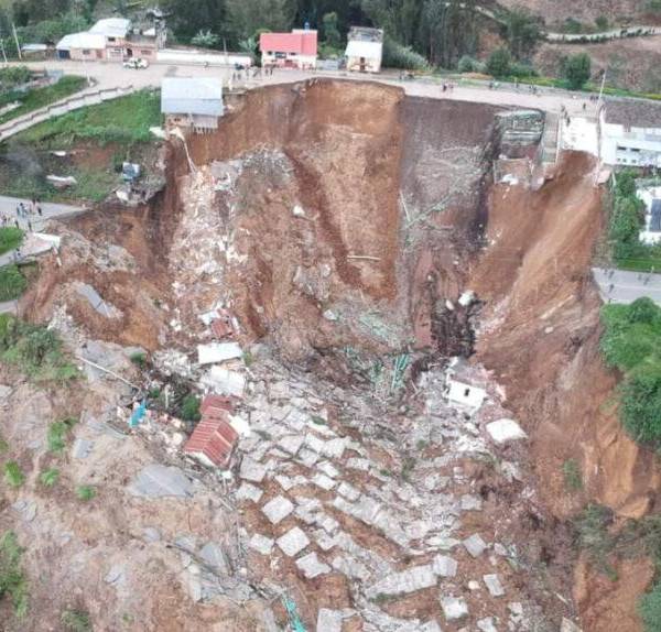 El hundimiento que destruyó las viviendas, mantiene en evaluación a la zona para conocer con mayor precisión los estragos. ( )