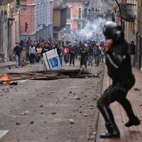El lunes 7 de octubre las protestas volvieron a aproximarse al Palacio de Carondelet, la ahora desocupada sede del Ejecutivo en el centro colonial de Quito. También, las autoridades de Guayaquil se vieron obligados a bloquear los puntos de acceso, como puentes, para que manifestantes de otros sectores no pueda ingresar a la ciudad.