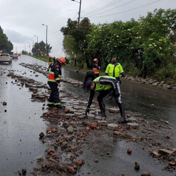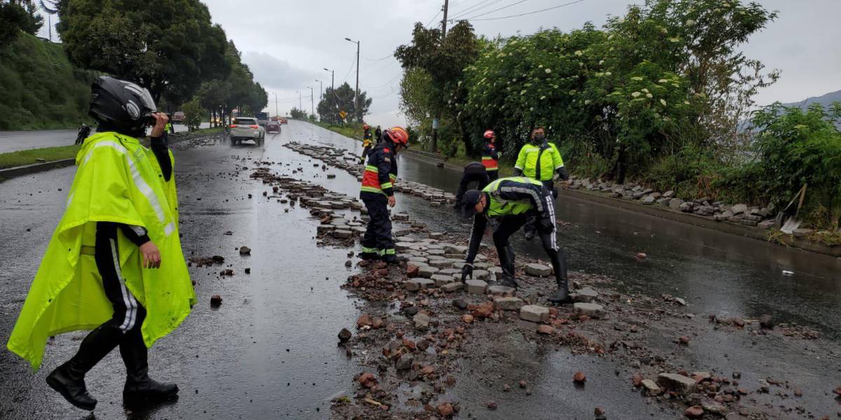 Un río de agua que arrastró adoquines, piedras, tierra y basura se formó en la avenida Gonzalo Pérez Bustamante que conecta a la Simón Bolívar con la Rafael Morán Valverde. De igual forma, personal del Cuerpo de Bomberos de Quito y la Agencia Metropolitana de Tránsito (AMT) atendieron un deslizamiento de tierra que ocurrió en la Simón Bolívar, en sentido sur - norte, pasando El Troje.