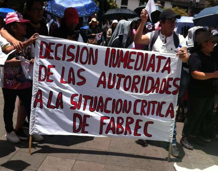 El lunes, luego del cambio de guardia, llegaron a la Plaza Grande de Quito al menos 400 trabajadores de Fabrec, empresa pública que produce uniformes y que le debe a este grupo un promedio de un millón de dólares por 4 meses de sueldos y el décimo de agosto.