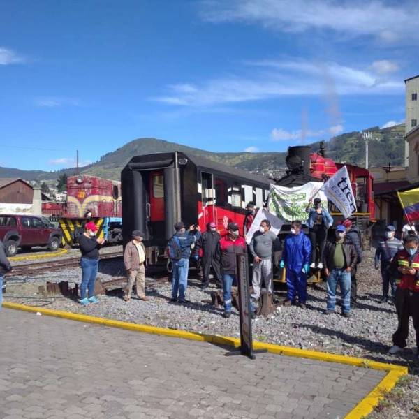 Trabajadores de Ferrocarriles del Ecuador realizaron un plantón en las estaciones de Chimbacalle al sur de Quito, Durán, Riobamba e Ibarra. Rechazan la decisión de eliminar la empresa y la intención de traspasar sus operaciones a una empresa privada.