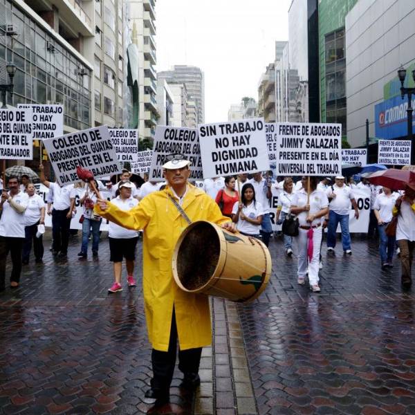 Trabajadores marcharon en Guayaquil para hacer escuchar sus reclamos -