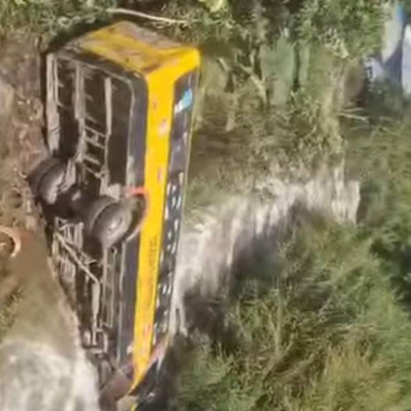 El momento fue captado por cámaras de celulares, que evidenciaron cómo el bus, con características similares a los escolares y destinado al transporte interprovincial, terminó completamente volcado, boca abajo, entre la maleza y las rocas del sector.