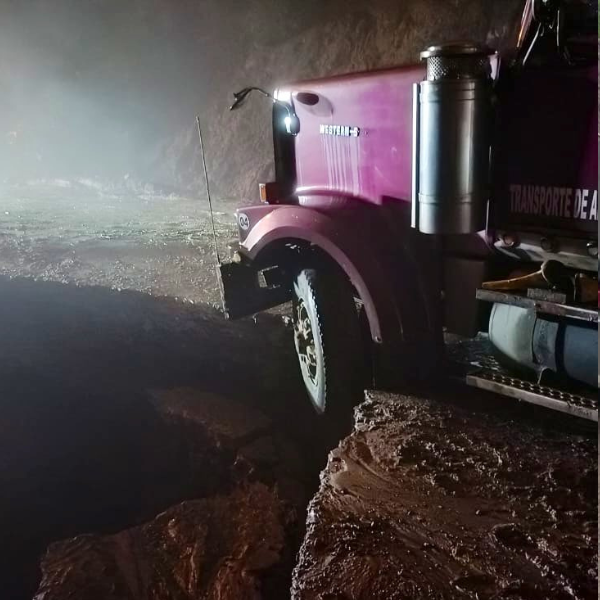 Un tráiler y un camión quedaron atrapados en un socavón en la vía Cuenca-Girón-Pasaje