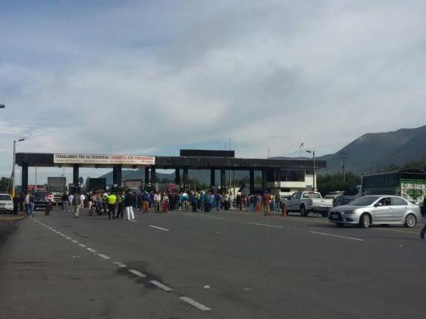 Desde la mañana de este 18 de abril, la vía Alóag-Santo Domingo está cerrada debido a que un grupo de transportistas se ha concentrado en el sitio para protestar contra el nuevo cobro del peaje.