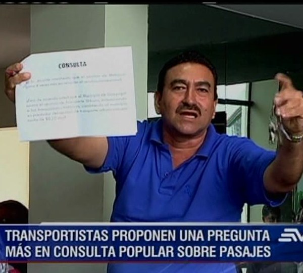Transportistas de Guayaquil proponen que en la consulta popular que se realizará para definir si se incrementa o no el precio de los pasajes, se incluya una pregunta adicional. Ellos plantean que el Municipio asuma la provisión del servicio de transporte público en la ciudad, previa indemnización a los choferes.