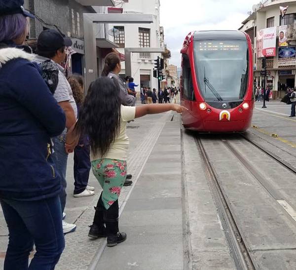 Tranvía de Cuenca opera con ciertas restricciones por las calles de la ciudad azuaya. El medio de transporte, que inició su servicio el viernes 8 de marzo de 2019, brinda su servicio a grupos prioritarios y aún no se establece su tarifa.