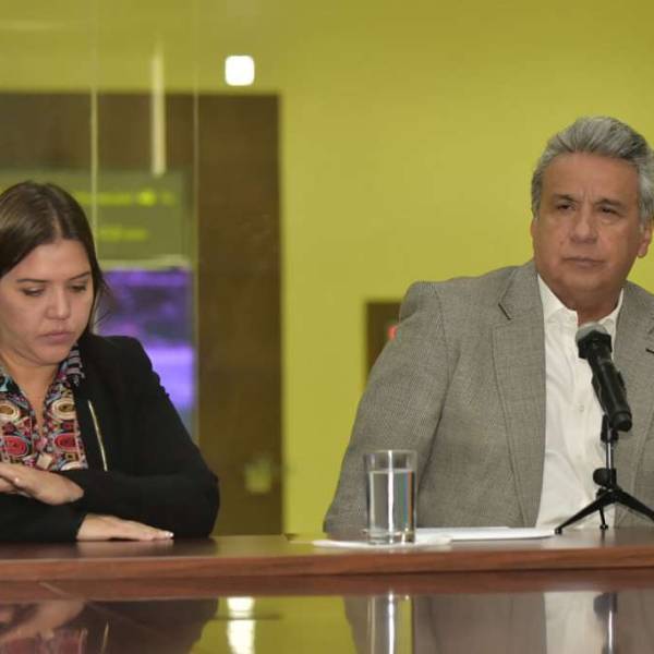 El inesperado anuncio del presidente Lenín Moreno se dio en el Salón Amarillo del Palacio de Carondelet, en compañía de su nuevo gabinete: “He decidido liberar de sus funciones a la señora vicepresidenta para que pueda ejercer sin interferencias de ningún tipo su derecho a la legitima defensa. Por la delicadeza de esas funciones, las estoy encargando al secretario general José Augusto Briones”, dijo el jefe de Estado.