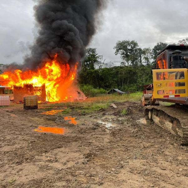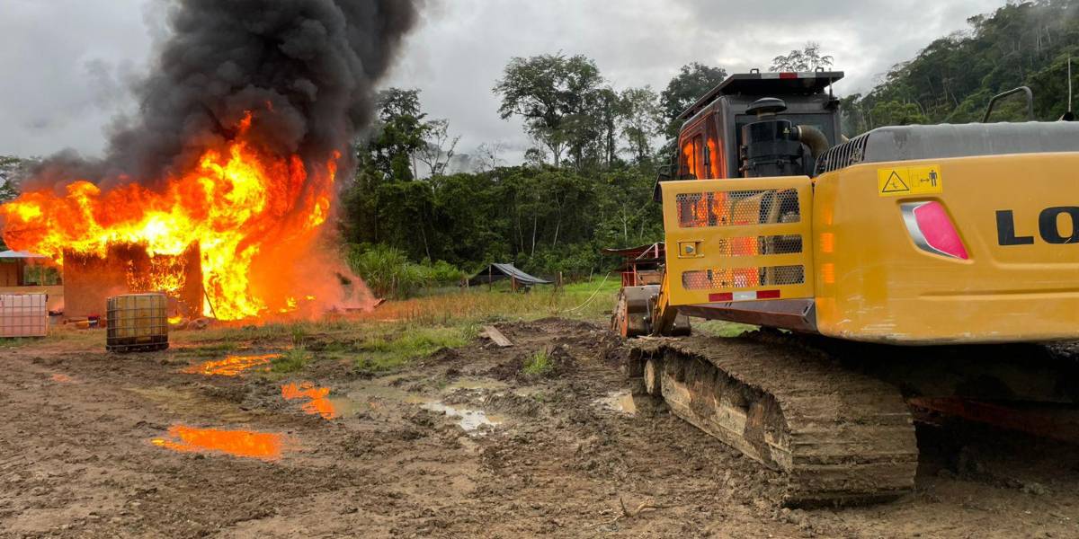 La incursión se realizó en el sector de Tink-Nayap, este 5 de noviembre 2025. Los militares se incautaron de 26 retroexcavadoras destruidas in situ.