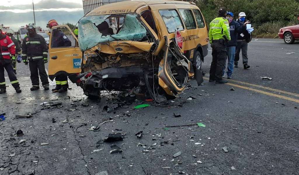 De acuerdo a un informe del EU 911 de Quito, el siniestro ocurrió aproximadamente a las 05:35. "Se trató de un choque frontal excéntrico entre una furgoneta tipo escolar y una camioneta doble cabina", indicó la institución en un comunicado.